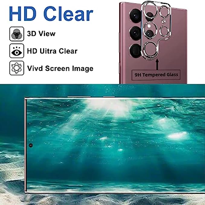 【Support Ultrasonic Fingerprint & Ultra Clear & Touch Sensitivity】High-response Haptic Touch Technology gives a "True Touch" feel, 0.26mm thickness is reliable and resilient which support ultrasonic fingerprint. 99% HD Clear screen protector with High definition transparency film and maximum resolution which keeps the bright and colorful image quality. Compatible with Face Recognition. 【9H hardness& 3X Stronger Scratch resistant】Upgrade 10X Military Shockproof with edge strengthening design, Highly durable Resistant Tempered Glass can Effectively Protect Your Galaxy S22 Ultra from Unwanted Scuffs and Scratches by Keys and Some Other Hard Substances. ✔【4 Pack】2 Pack Screen Protectors+2 Pack Camera Protector are both made of High-quality Tempered Glass for Samsung Galaxy S22 Ultra (6.8"). 【Maximum Coverage & 3D Curved Fit, Case Friendly】It is 100% brand new, Precise laser cut tempered glass, exquisitely polished, 2.5D rounded edges technique makes curved edges of the film to perfectly fit curved corners and edges of the phone, 1.4 mm margin around the edge of the device to be compatible with MOST cases.If for any reason you are not completely satisfied, you will receive a replacement or refund or Lifetime maintenance & 24H Customer Service. 【Camera Lens Protector Double Protection】Nano electrostatic automatic adsorption technology, easy installation and not easy to fall off, without any bubbles or white edges. Up to 9H hardness tempered glass, can protect the camera from scratches, shatterproof and high-impact drops. Anti-fingerprint coating to keep it clean, the light transmittance of 99.99%, Transparent camera lens film keeps your phone in its original color and allows you to keep phone photos original all the time. 【Easy Installation & Bubble-Free & Oleophobic Nano Coating】:It adopts premium quality AGC glass materials, thus creating an oil-resistant, anti-fingerprint, Highly durable, and scratch-resistant surface that is easier to clean and protect against sweat effectively, and enhance the visibility of the screen. Bubble Free Guaranteed. Removing dust and aligning it properly before actual installation, One-touch ultra-light automatic adsorption installation, no foam at all. Zrnmrle
