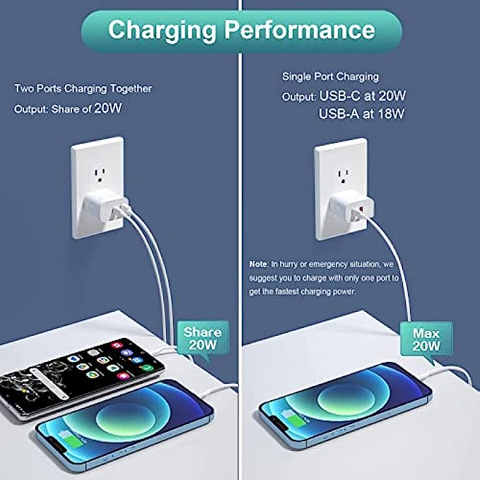 【What You Get】2 X 20W Dual Port USB C / USB A Fast Wall Charger.Buy this product you can get USB C Wall Charger Block LIFETIME-WARRANTY,and 7*24-hours Friendly Customer Service,If there is any problem,please feel free to contact the seller.