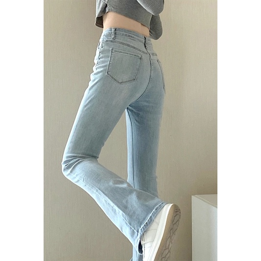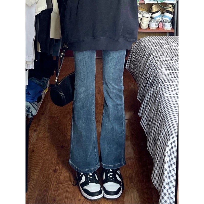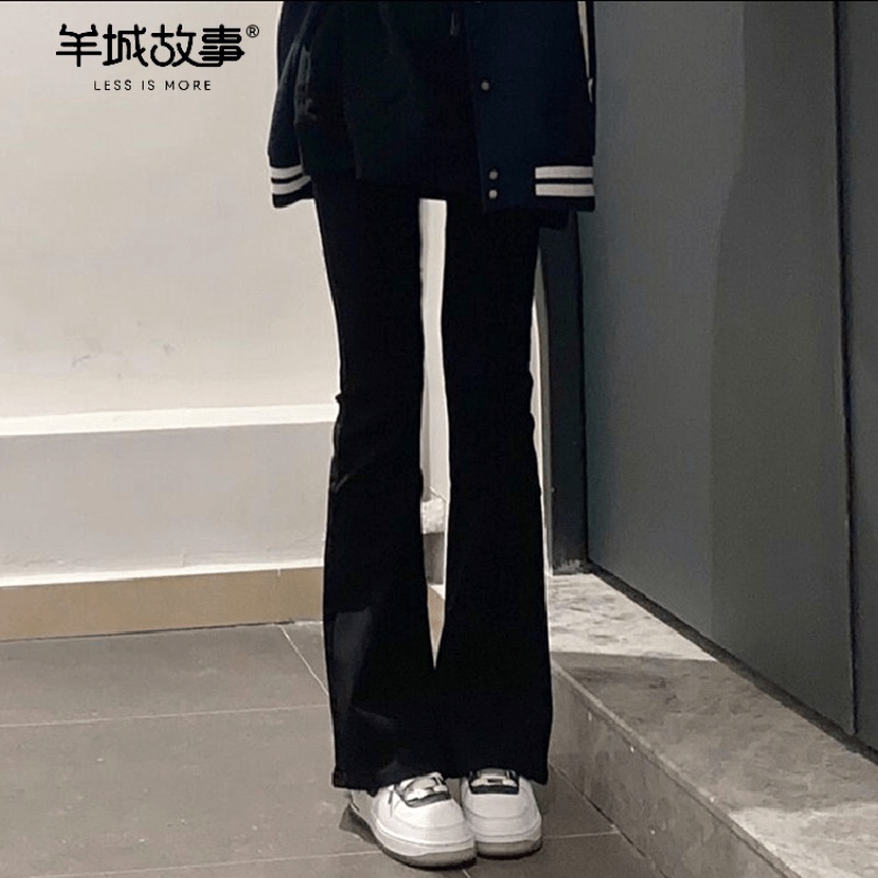 【羊城故事】牛仔褲 微喇叭褲 褲子 顯瘦牛仔褲 韓版牛仔褲 小眾 長褲 高腰顯瘦牛仔褲 窄管牛仔褲 設計感 褲子女生