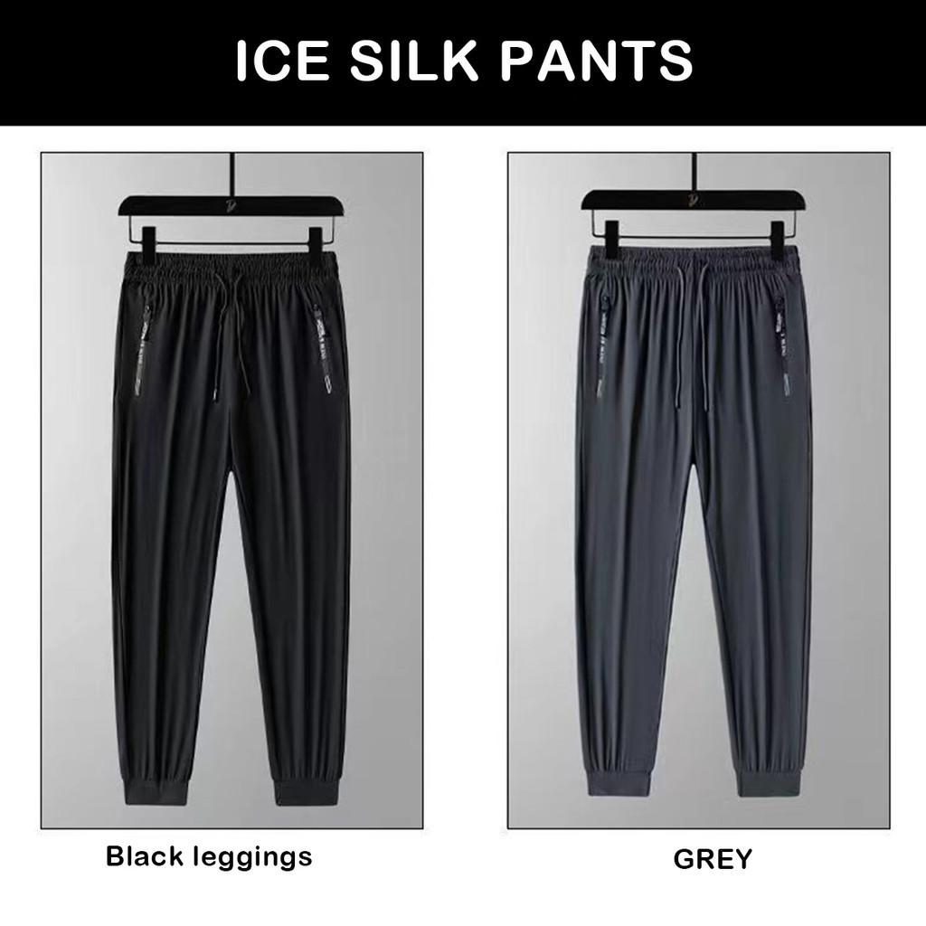 【 M-8XL 】 Plus Size Stretchable Superelastic Casual Ice Shreds Men's Thin Quick Drying Sports Pants Long Pants Men