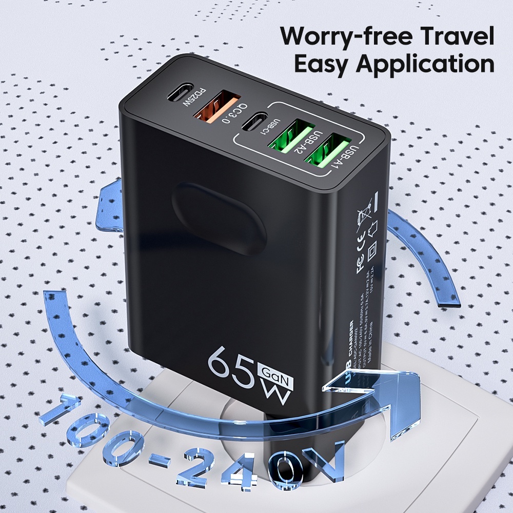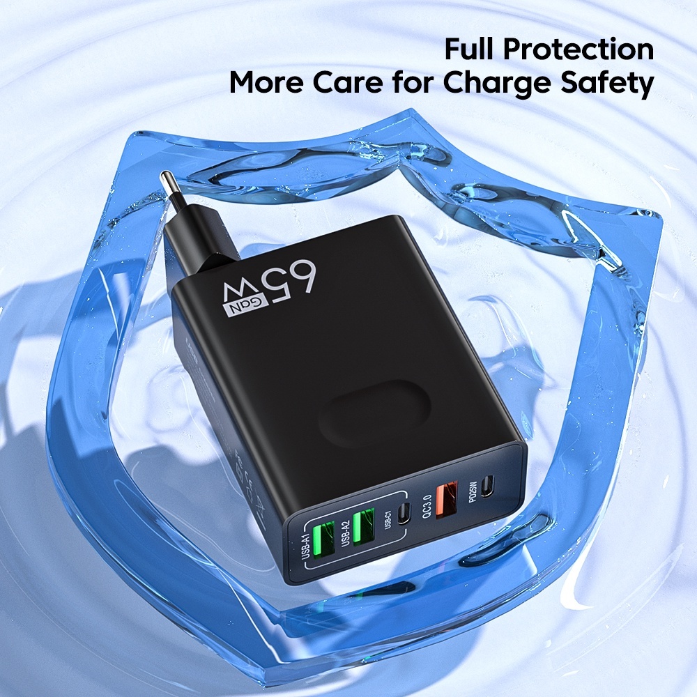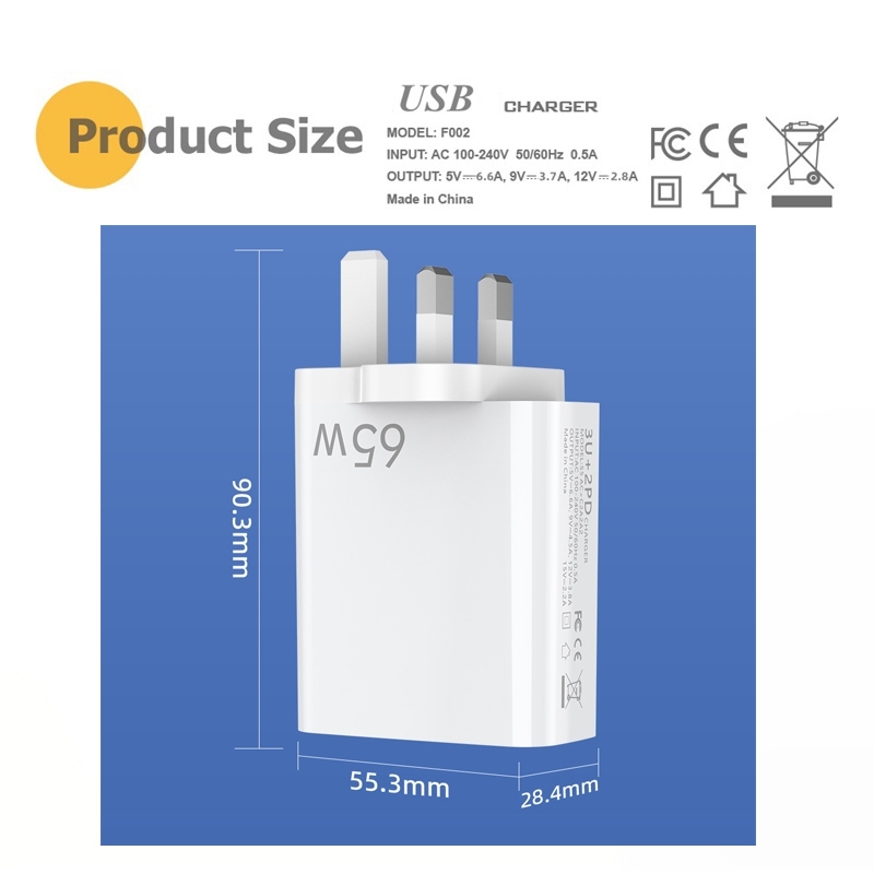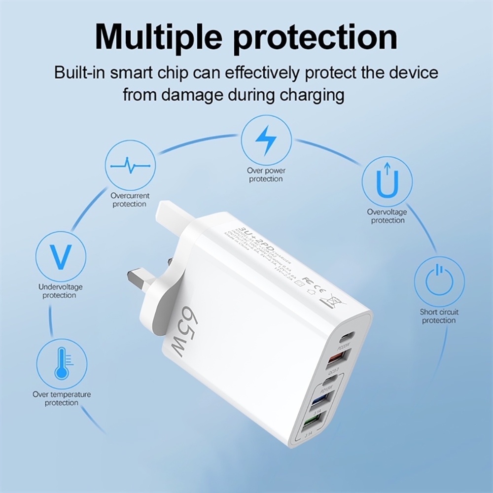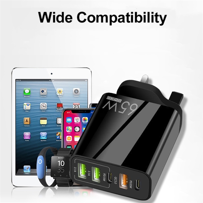 ?? [READY STOCK]65W USB Charger 5 Ports Fast Charge Charger Type C PD Quick Phone Charger Adapter Travel Adapter UK Plug