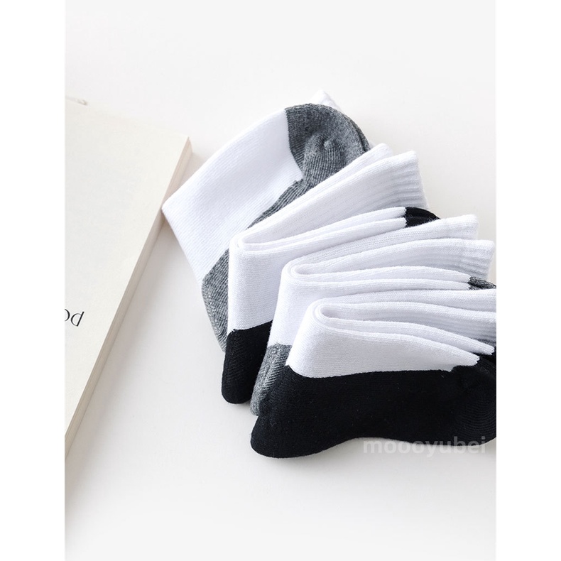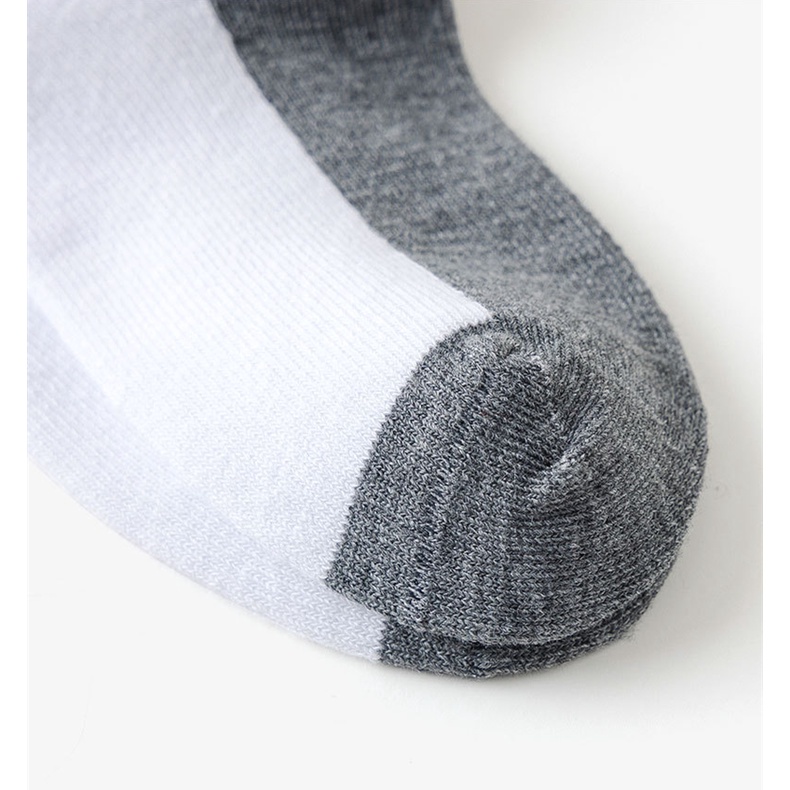 Colour:white and grey bottom Material Quality:cotton Good quality socks for pri sch kids..comes in a pack of 5 pairs..hope the cotton can last for whole year without any holes and the socks getting loose..