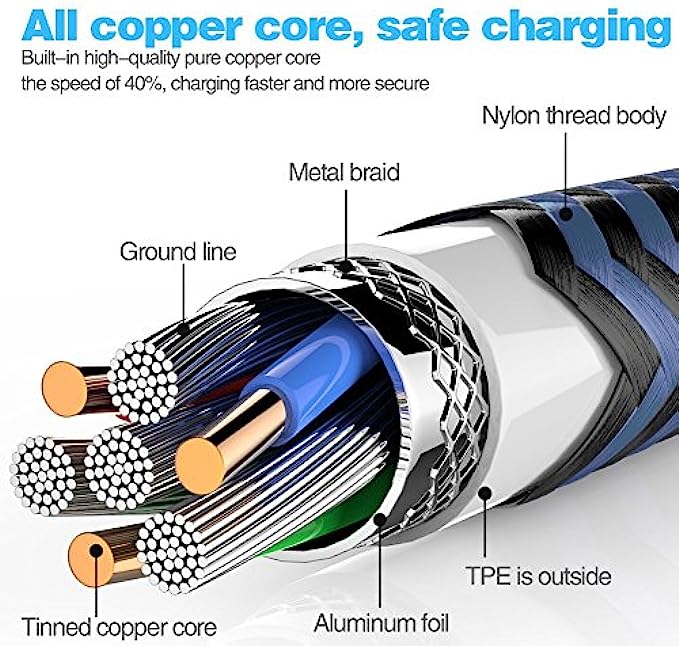 Nylon Braided, Extreme Durability: With a tested 12000+ bend lifespan, this USB-C to USB-A charging cable is far more dependable than others in its price range. Premium nylon braided Type C cable adds additional durability.