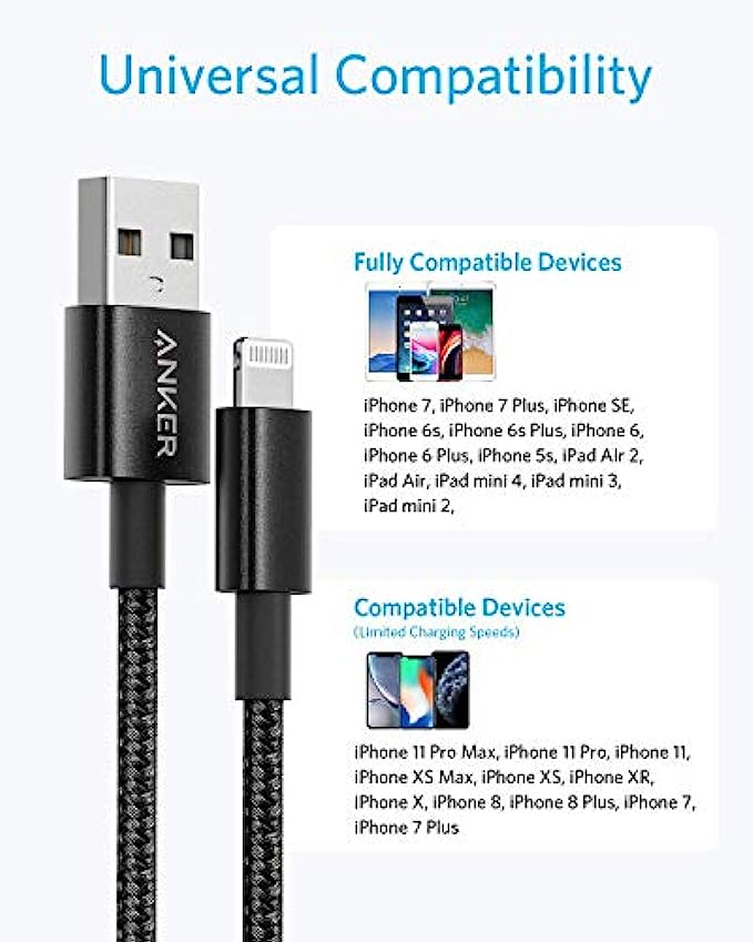What You Get: Premium Nylon Lightning iPhone Charger Cable (6 ft/1.8 m), welcome guide, a lifetime warranty, and our friendly customer service.