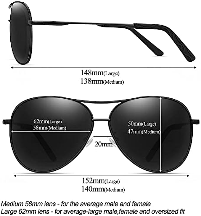 Aviator Sunglasses for Men Women Polarized UV400 Protection Mirrored Lens Metal Frame with Spring Hinges