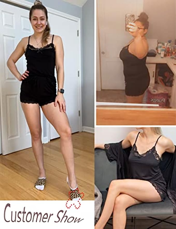 95% Polyester, 5% Spandex Imported Pull On closure Hand Wash Only Eco-friendly fabric: 95% Polyester, 5% Spandex. This women short pajama set is made up of slim-fit cami and easy-fit pants. It is soft and comfortable for your lounge time. 2 piece PJs set with a good elastic camisole & sexy shorts. Sleep top: sexy sheer and lace neckline with a bow and adjustable spaghetti straps.Sleep bottom: special shorts hem with sheer and lace design, elastic waistband with bow decoration in the middle of the front. Its casual style makes it not awkward even when guests visit. Take it as: pajamas sent for women, camisole and shorts, women's pajama shorts set, shorts pj sets for women, soft sexy pajamas for women, short sleepwear set for women, cami and shorts sleepwear sets, women's pajama sets sexy, pj sets for women shorts, cami sleep set. Simply relax in a lightweight pajama and have a good night.
