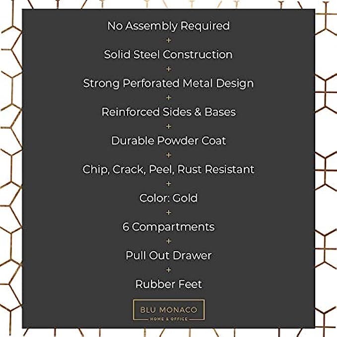 LOTS OF STORAGE: This gold office organizer has eight compartments and one pull out drawer for all your office supplies. When it comes to gold desk accessories for women office, this organizer has you covered.