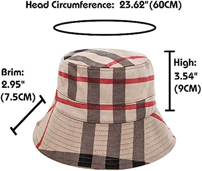 Viscose Imported Materail: Velvet, Soft and comfortable, light and breathable, perfect for spring fall winters. One size fits most women/ladies/girls with HEAD CIRCUMFERENCE-60CM(23.62"),BRIM-7.5CM( 2.95"). Vintage Plaid Print Travel Fisherman Cap : Plaid & tartan & checks patchwork design,classic and stylish; Flat top, Wide brim sun visor; Packable and rollable,easy to fold,can be placed in a bag or pocket. Retro Checkered Packable Sun Visors For Women: Wide brim design can keep the sun off from your face,will match different outfit style, ideal for lake walks,hawaiian beach vacations,street fashion,cruises,birthdays,parties,fishing,and all outdoor activities. A Best Gift: Colorful Bucket Hat Looks Fashion and Classic;Perfect for all seasons and all occassions,is a great gift for your wife,Lovers,colleagues,daughters,business partners.