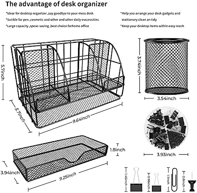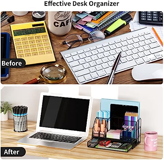 【Office Supplies Organizer Space Saving】: Desk organizers has enough storage space to accommodate your desk supplies,as folder, pens, post-its, rulers, business cards and more, also good for organizing makeups and small household items; keep it organized, easily find anything you need.