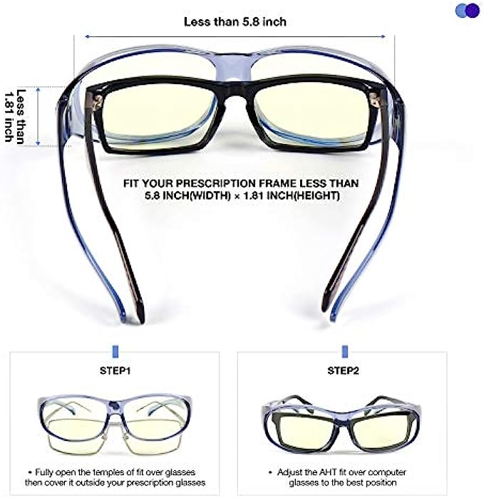 • DURABLE & COMFORTABLE WEAR - AHT fitover glasses have high quality, flexible frames that are designed for comfort and durability. They are ideal for gamers, people who spend long hours working with screens or cellphones, or people who have trouble sleeping after late night gaming, TV or cellphone use.