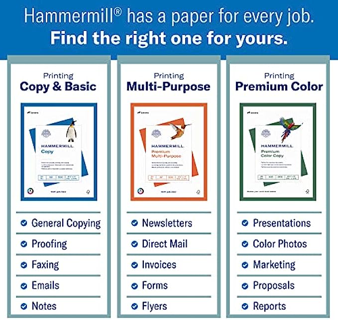 OTHER PAPER OPTIONS – Scroll down to compare Hammermill print and copy paper for every purpose including premium presentation-quality color copy paper, cover-weight paper stock, and glossy paper for photo printing