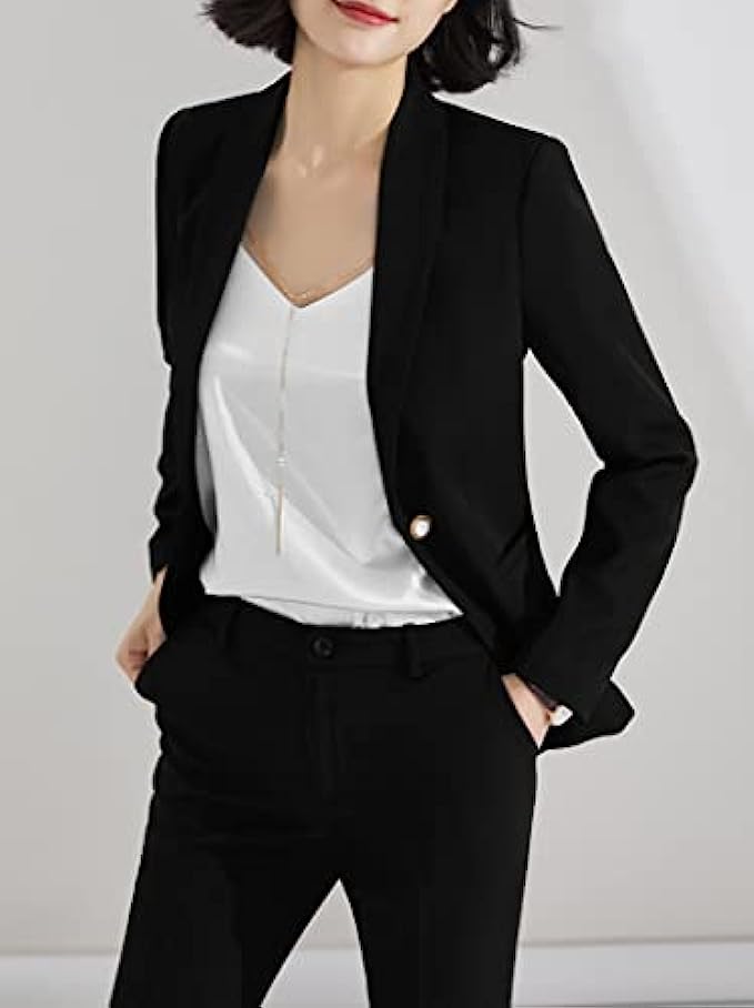 100% Polyester Imported Button closure Hand Wash Only 【Fabric】- Made of high quality 90%polyester & 6% spandex & other fabric.The lining is 100% polyester. 【Top】-Fashion notched lapel,and comfortable thick shoulder pads.Fake chest pocket decoration.Durable double breasted button.Practical and real front pockets with covered.Classic long sleeve,simple cuffs with exquisite button decoration,unique solid pattern design,waisted,regular and neat blazer hem. 【Buttom】-Straight leg pant,stick button with zipper closure,belt loop design,functional slant pockets.