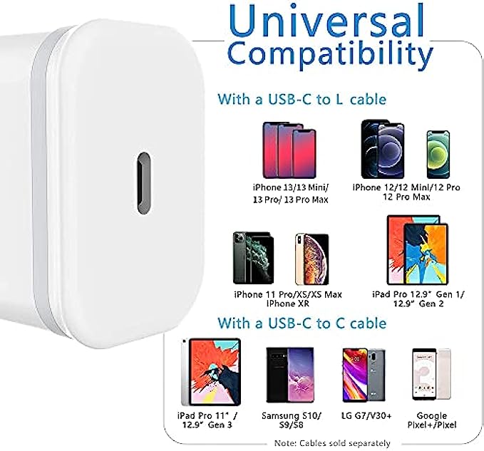 Specifically Designed: 20W USB C Charger Designed for 13 / 13 Mini / 13 Pro / 13 Pro Max 12 / 12 Mini / 12 Pro / 12 Pro Max, 11 Pro Max, Pad Pro / Air /Mini, AirPods Pro.