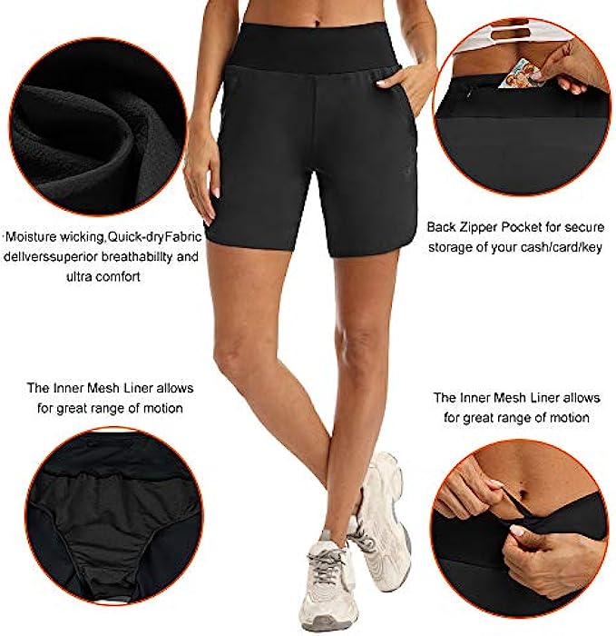 • 【Quick Dry Fabric】 Women Running shorts have breathable fabric, with quick-drying and lightweight features, and Won't rub your legs. Let you feel comfortable and stay cool all summer