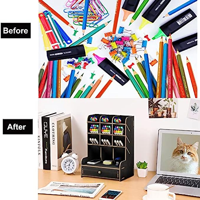 ✎【CREATIVE DIY DESIGN】: This Desktop organizer needs to be assembled By Yourself, it's full of the joy when you assemble the desktop organizer . Installation according to the instructions or video is very simple ,made up of 15 boards to assemble,fix it with screws. A single man can easily assembly it within 20 minutes. Instantly turn it into an eye-catching stationary.