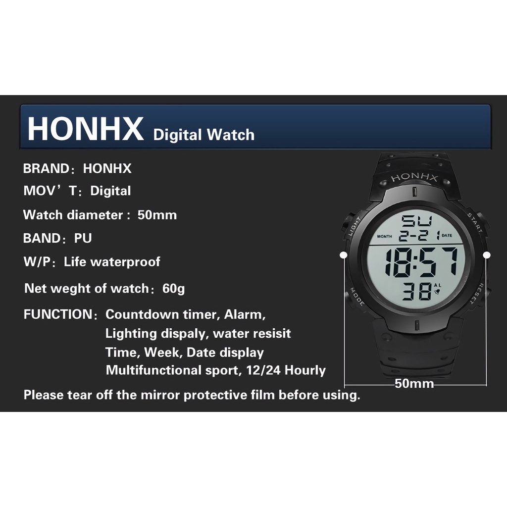 Men Watch Waterproof Silicone LED Digital Stopwatch Date Rubber Sport Wrist Watches