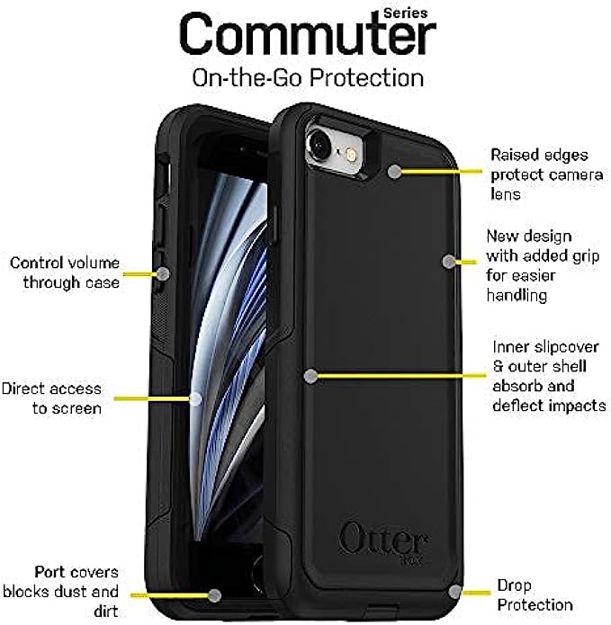 OtterBox COMMUTER SERIES Case for iPhone SE (3rd and 2nd gen) and iPhone 8/7 - Frustration Free Packaging - BLACK