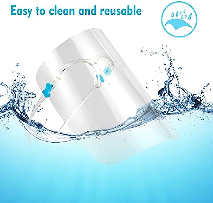 Reusable Face Shield: Anti fog face shield mask transparent are made of super clear recyclable PET, the face shield is washable and can be reused many times, environment friendly.