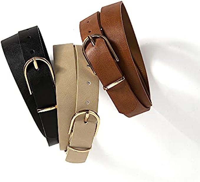 100% Faux Leather Imported Pin Buckle closure Dry Cloth Clean [ Faux Leather Jeans Belts ] Made out of the smooth leather-like material that provides you with a soft touch. It also features a single-prong buckle in metallic finish. For best care, spot clean only [ Belts Size ] Womens belt in XS/S/M/L size, belt wide 1 1/10", please measure your waistline(include the clothes you want to match)to make sure the item fits before buying (Our size chart is different from Amazon, please check it more careful) [ All-Match On Trend Style] From timeless black to brown beige or white with gold buckle this belt has the look to match with any of your daily outfits, adjust it to your preference to wear on waist or hips