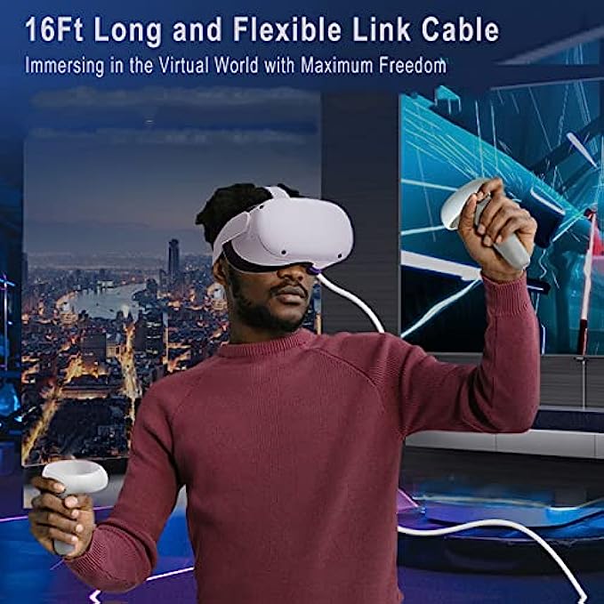 【16ft Flexible Long Link Cable】16 ft long link cable gives you maximum freedom of movement without being restricted when you are immersed in the VR world.