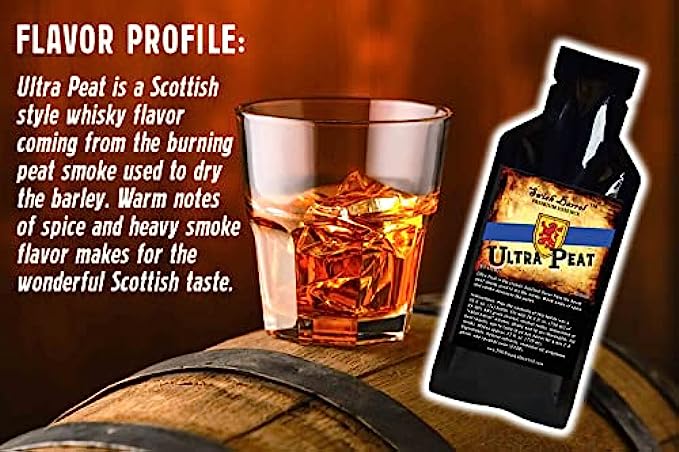 Ultra Peat is a Scottish style whisky flavor coming from the burning peat smoke used to dry the barley. Warm notes of spice and heavy smoke flavor makes for the wonderful Scottish taste. The flavor expands and oak notes are imparted when aged in a small or mini oak barrel.