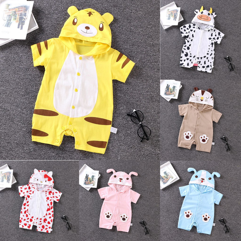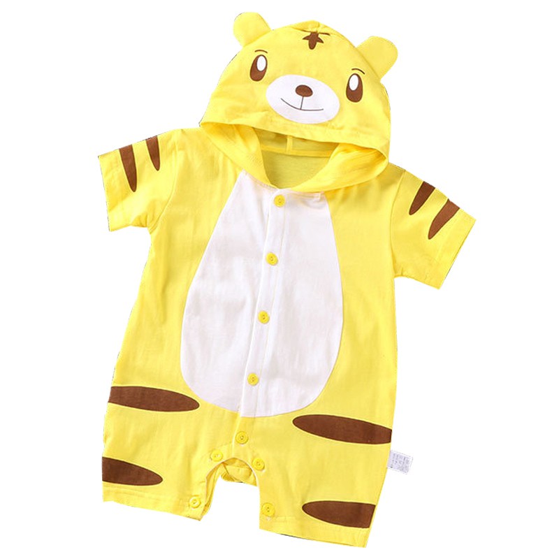 Baby Rompers Short Sleeve Toddler Jumpsuit Fashion Cartoon Animals Newborn Cute Hooded