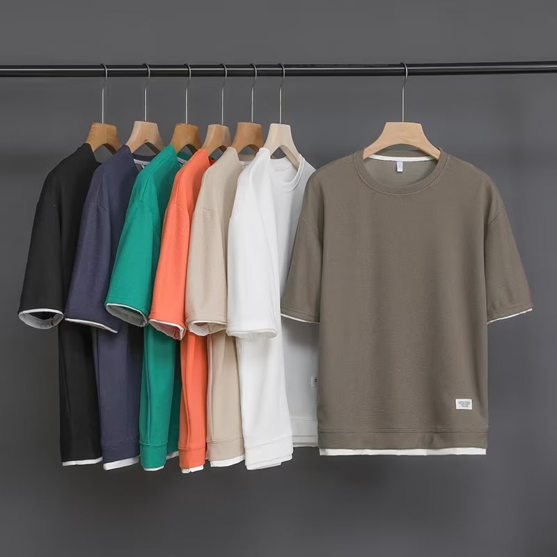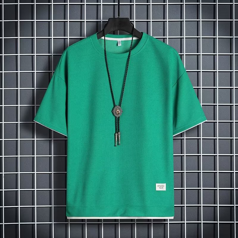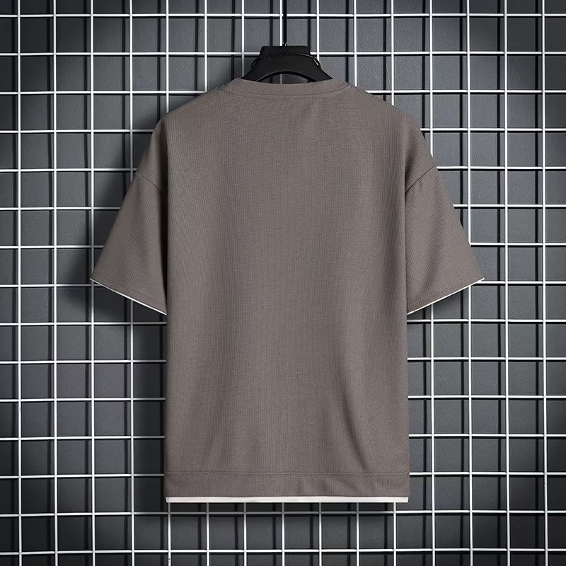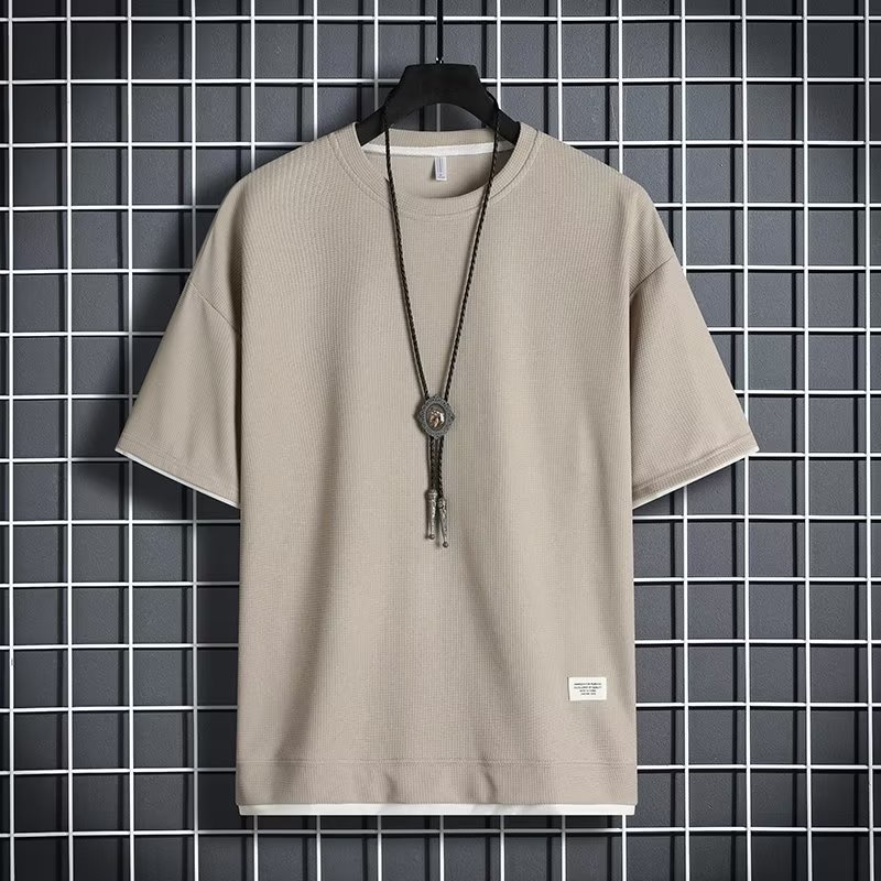 Basic Plain Waffle T Shirt Men Summer Thin Breathable Short Sleeve Tshirts Simple Casual Loose Round Neck Top