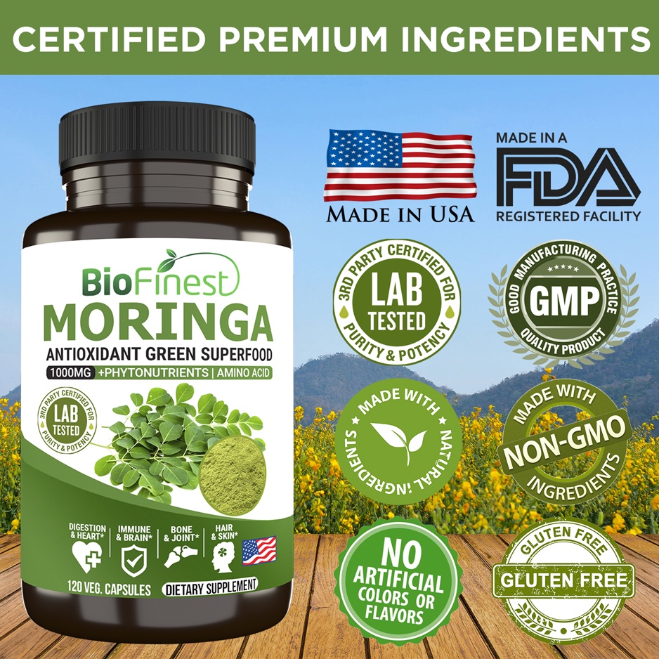 Performance:good performances . Suitability:suitable for adults , male and female, young and old . BioFinest Moringa leaf 1000mg + phytonutrients / amino acid . 120 vegan capsules dietary supplement. Easy to use flip-open-close bottle cap for daily use, convenience to carry around for home, office, workout and traveling. Smooth and easy to swallow form, no oversized capsules, no nauseating bitter attertaste. Tasteless, no bitter aftertaste, smooth to swallow. After taking moringa leaf capsules supplement my muscles clamped was gone. I will definitely recommend to my friends and colleagues. Very fast delivery. Thanks seller and team for their hard efforts to deliver this product in time. This is my second time ordering.
