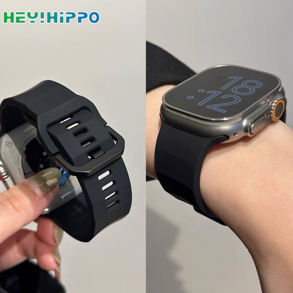 Black buckle sports strap suitable for smartwatch series 9/8/7/6/5/SE/4/3 wave design silicone strap suitable for iwatch 45/44/42/41/40/38/49mm