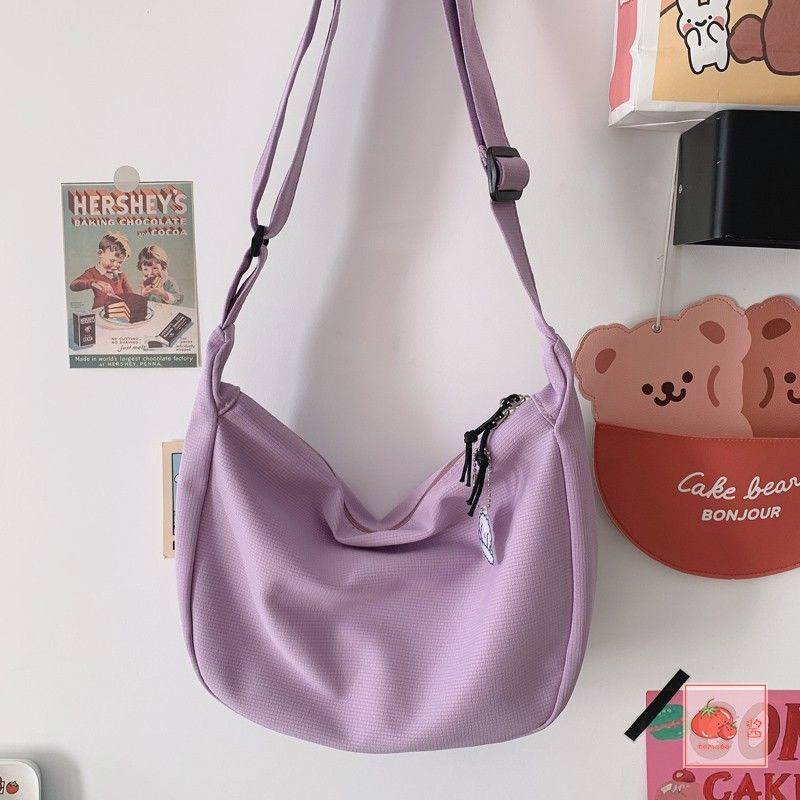 Crossbody Bag Student ins Japanese Shoulder Simple Waffle Casual Art Messenger Solid Color Dumpling YKD YK