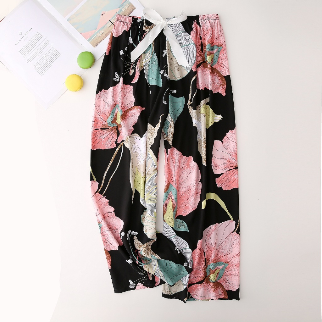 Fashionable summer women's thin trousers plus size high waist wide leg trousers can be worn by pregnant women