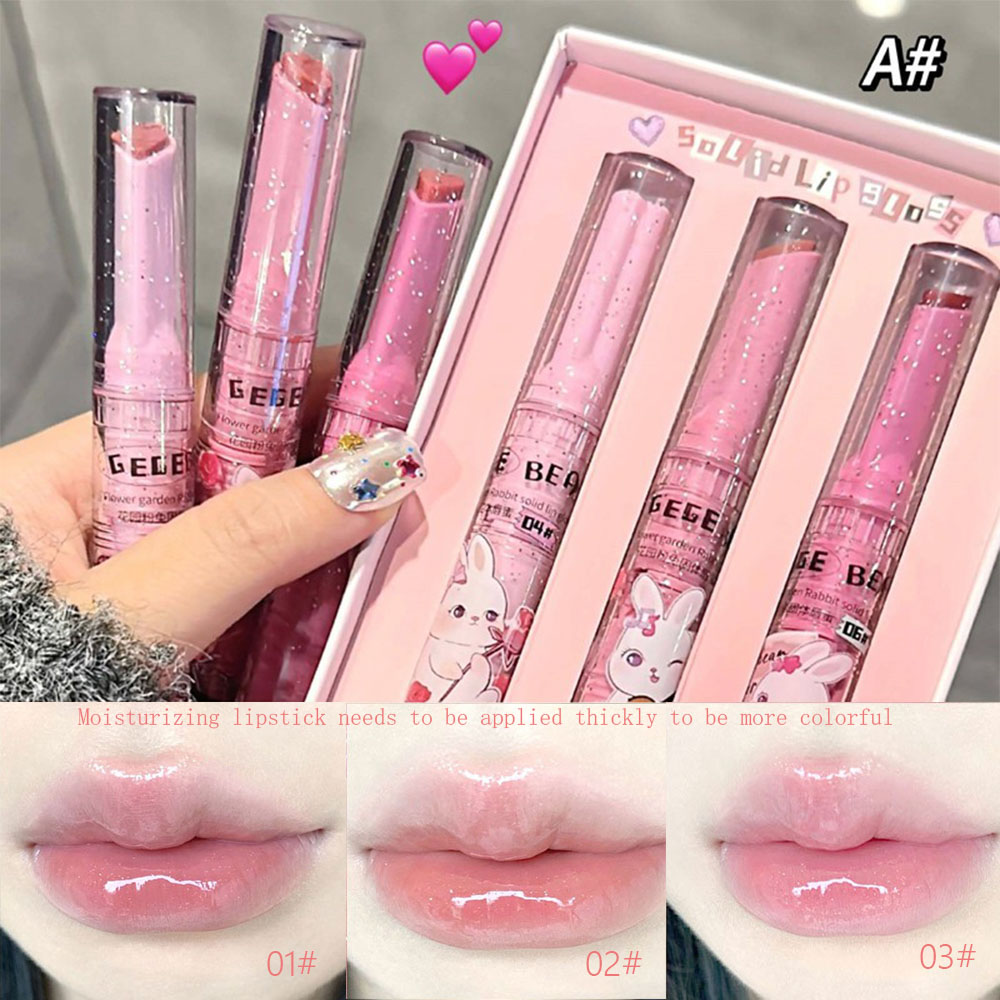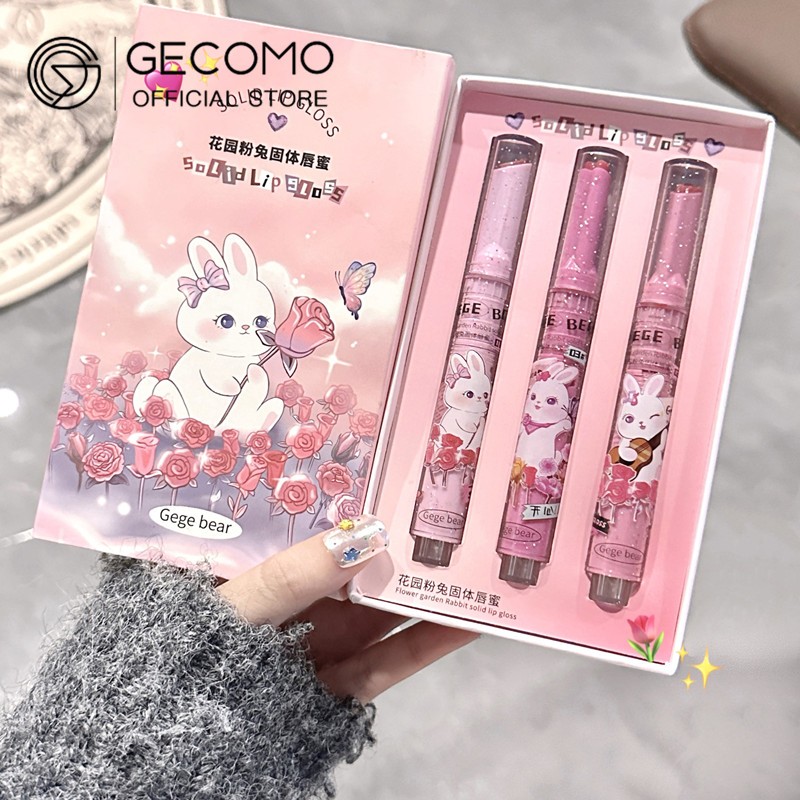 GECOMO Watery Mirror Lip Gloss, Garden Rabbit Lipstick Set, Press-on Lovely Lip Gloss