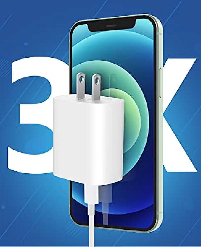 【3X Fast Charger iPhone】20W USB C iPhone fast charger with 10ft USB C to lightning cord, PD 3.0 quickly charge USB C port provides 3x faster charging speed than original 5W iphone chargers do. It can charge iPhone 13, iPhone 12 up to 50% in just 30 minutes which saves more time for you.