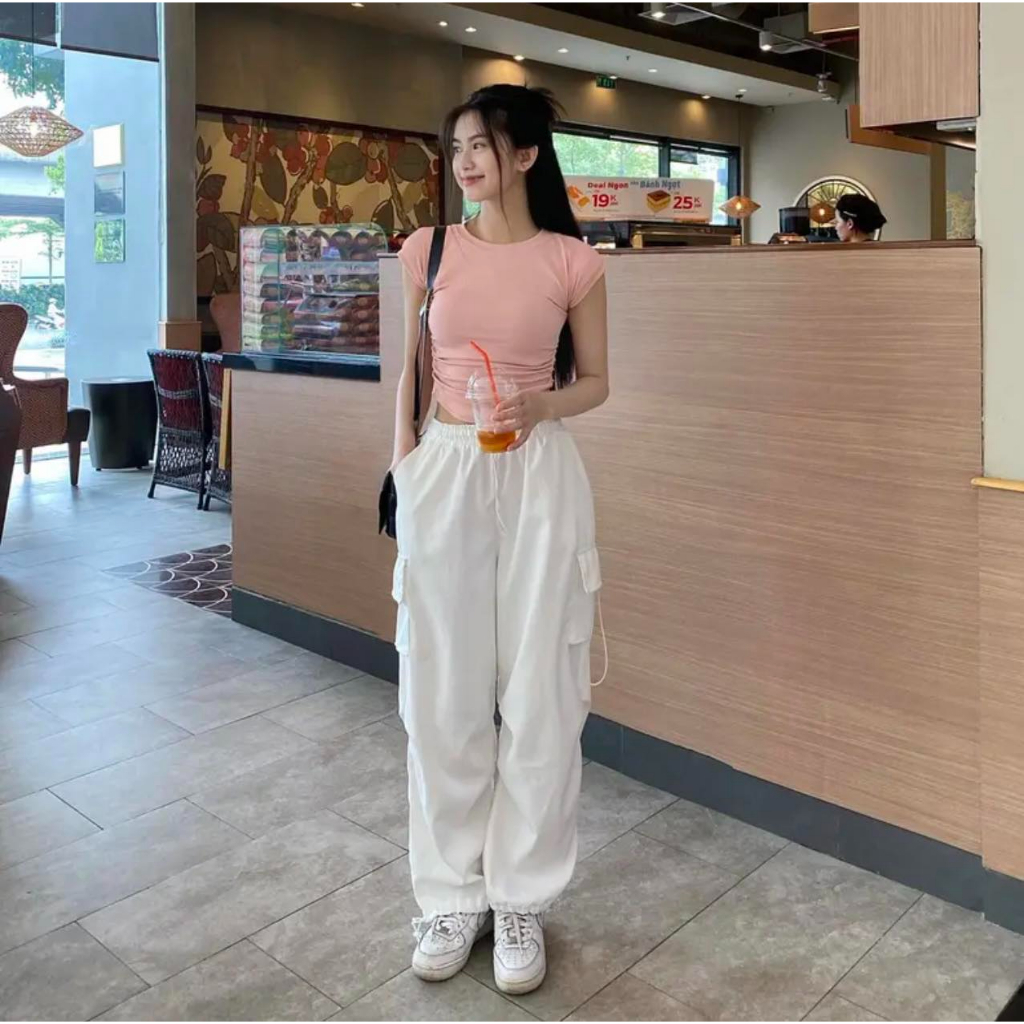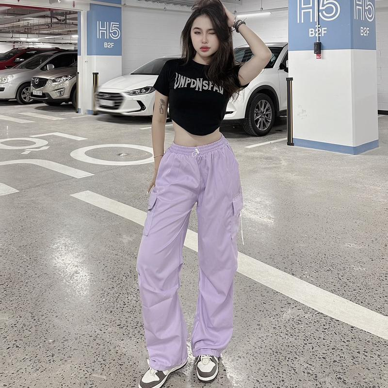 Khaki Wide Tube Drawstring Drawstring Pants Retro Style For Women Bigsize70kg MA403