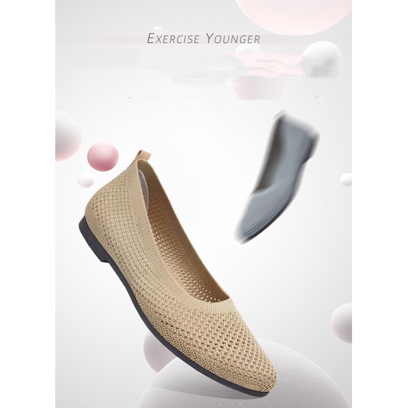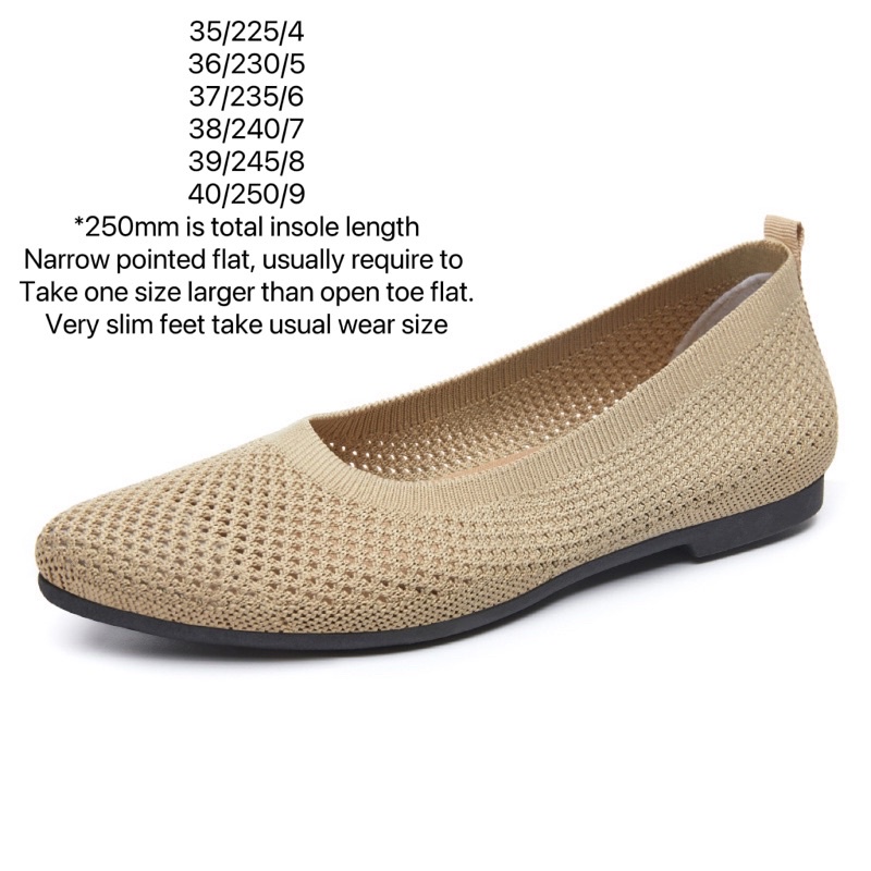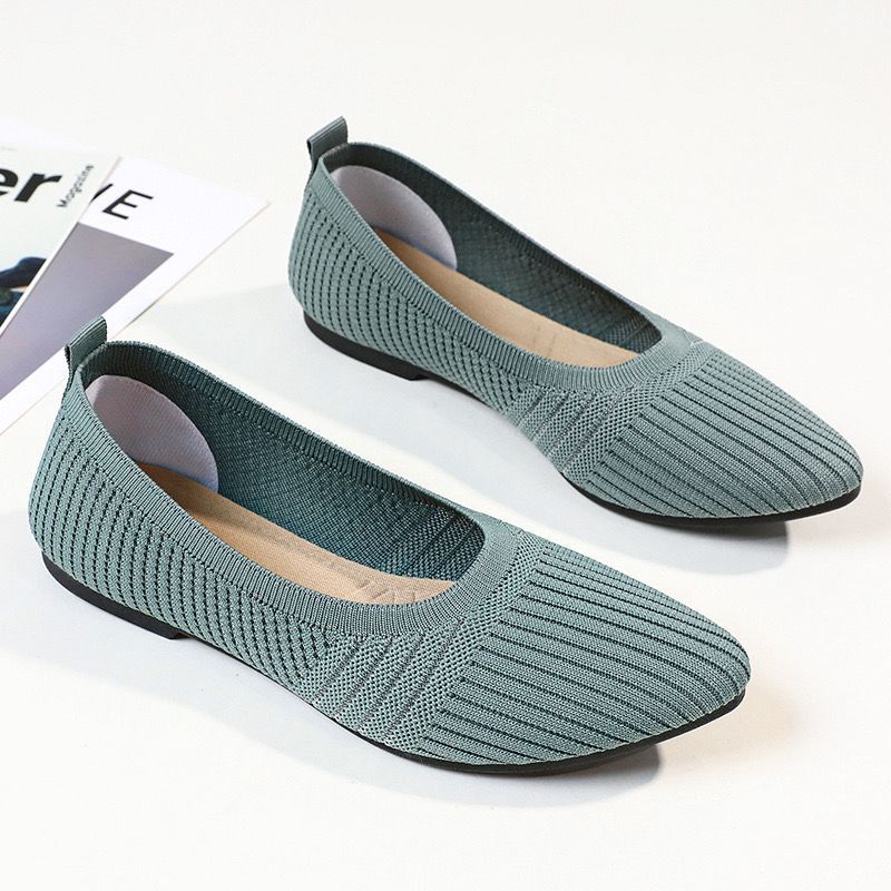 Lady comfy knit material pointed flat shoes Kasut Perempuan