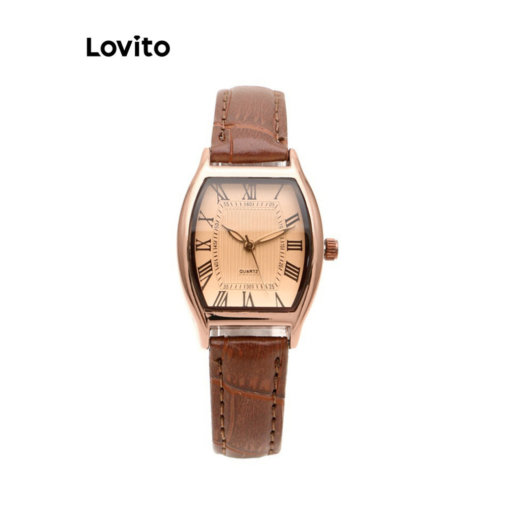 Lovito Casual Plain Basic Quartz Watch for Women L66AD056 (Coffee/Black)
