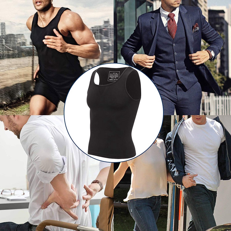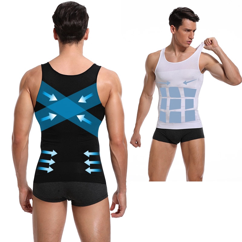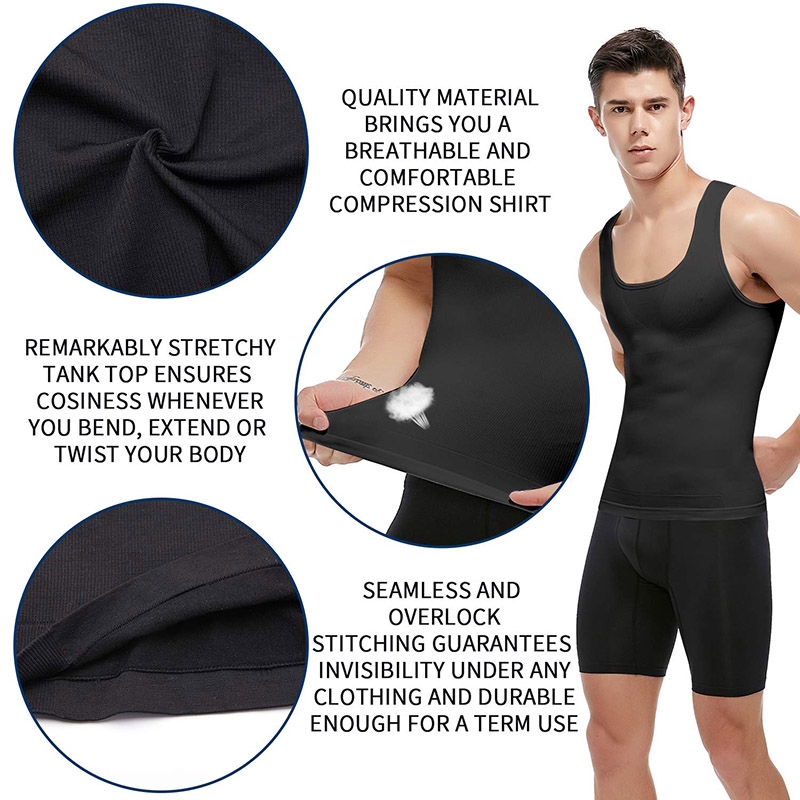 【M-3XL】Men's Body Slimming Shaper Compression Shirt Fitness Vest Abdominal Exercise Stretch Fabric Back Support shapewear tank tops