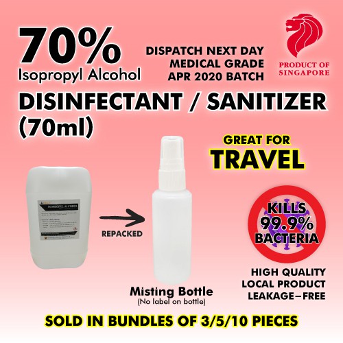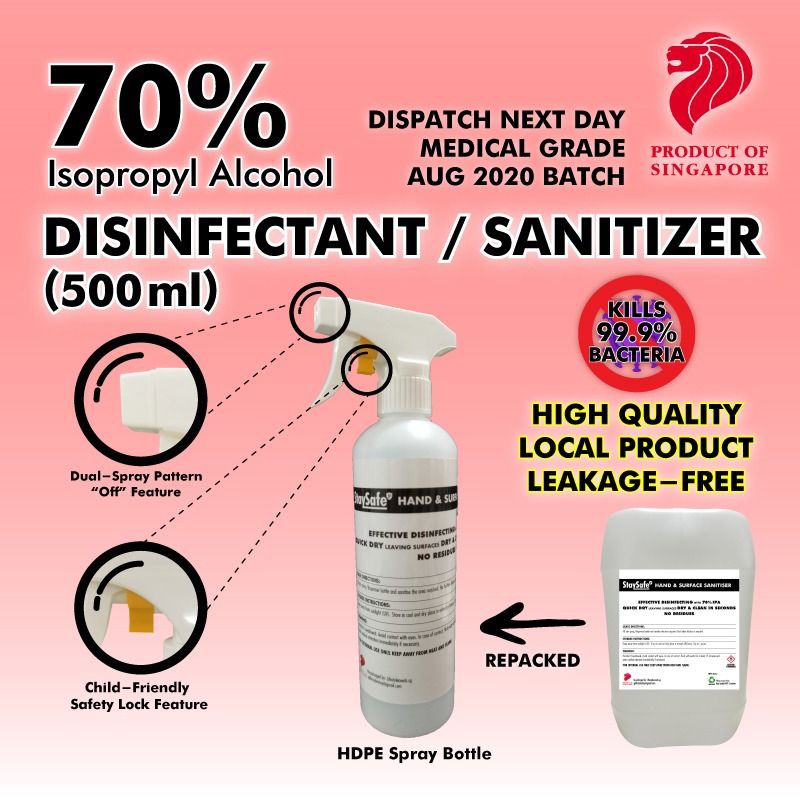 Sanitizer / Surface Disinfectant 70% Isopropyl Alcohol Based (Hospital grade) 5L 1L 500ML