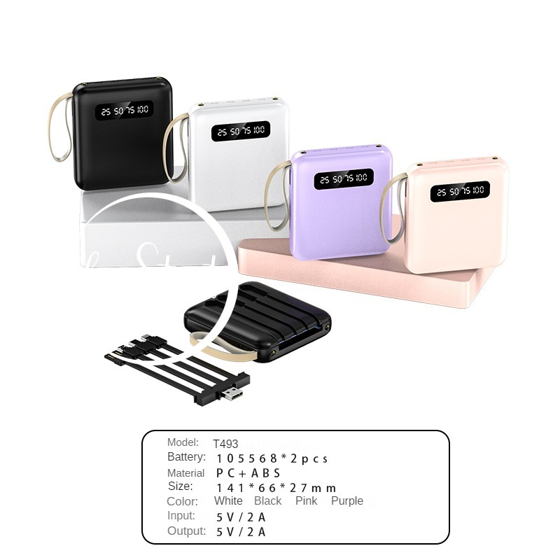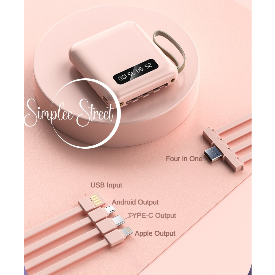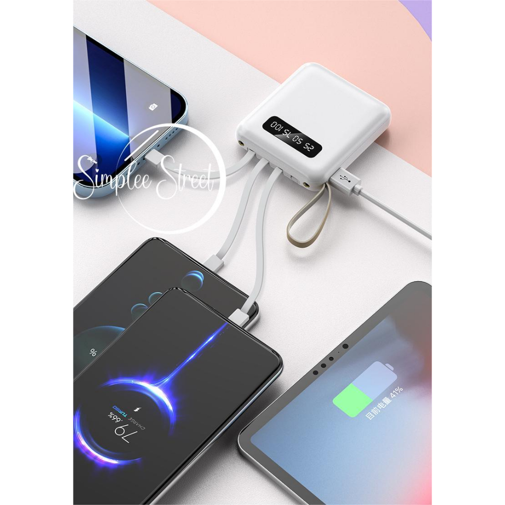 【SG Local Stock】20000mAh Power Bank Portable With 4 Wires LED Flashlight