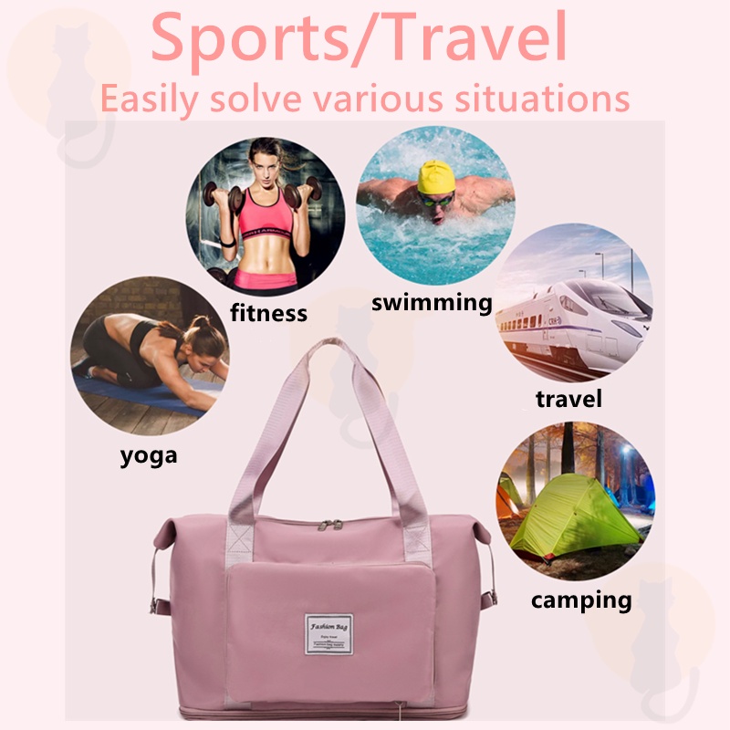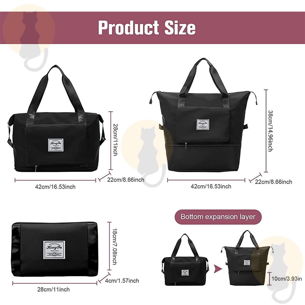 Colour:black Material Quality:good Neat foldable travel bag, convenient for carrying shopping loots and is expandable to fit more stuff. There is also a slot to put through the luggage handle ?