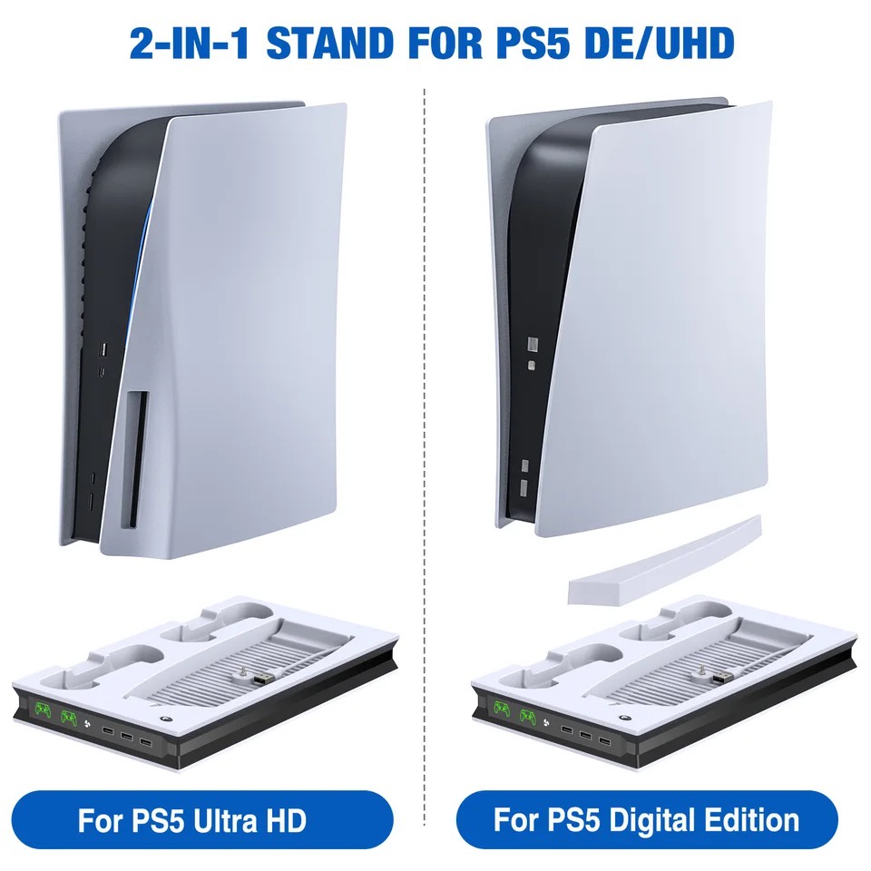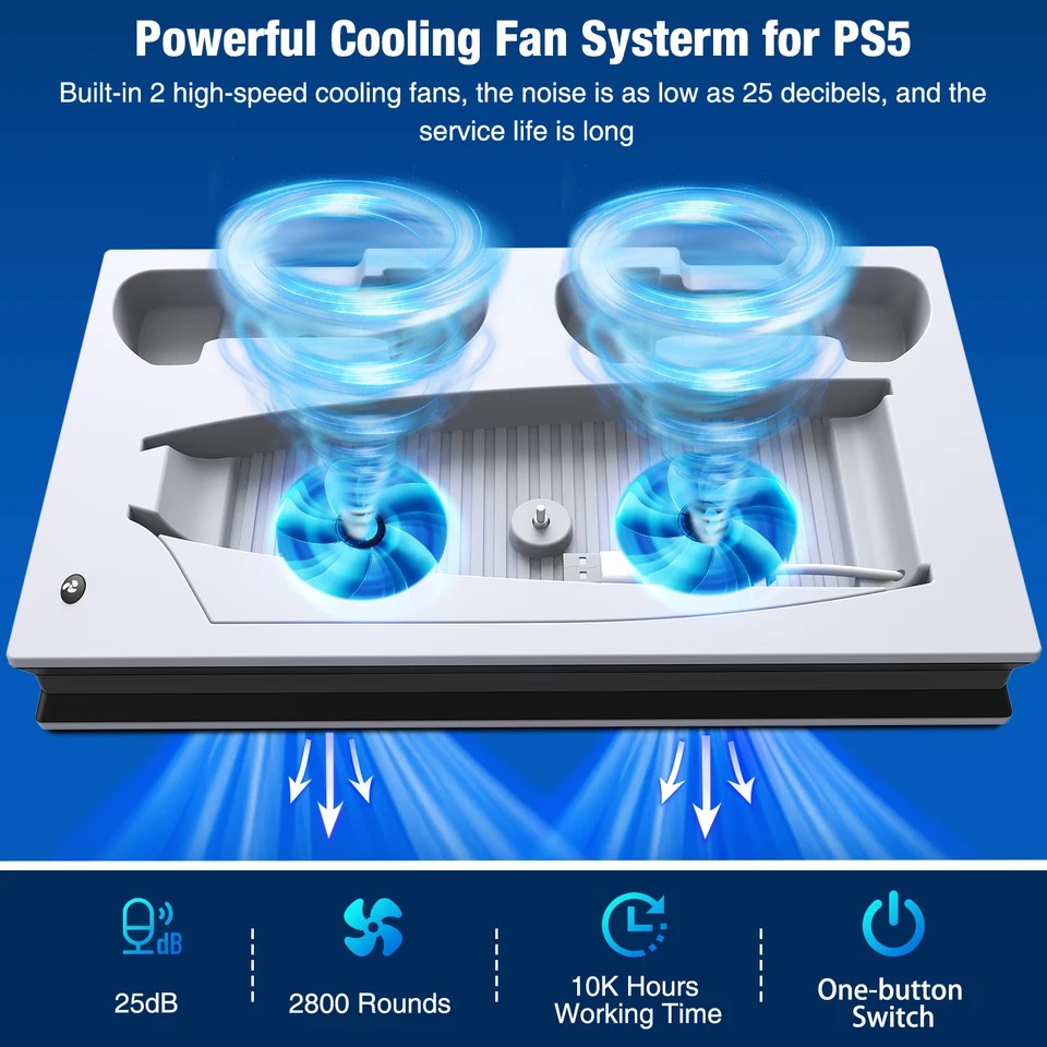 【SG Stock】PS5 Stand With 2 Dual Fast Cooling Fans Controller Charging Station with 3 Extra USB Ports Stand
