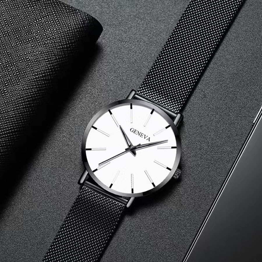 T Trendy Simple Mesh Strap Watch Men's Scale Quartz Daily Work Watch White Black New Style 2024