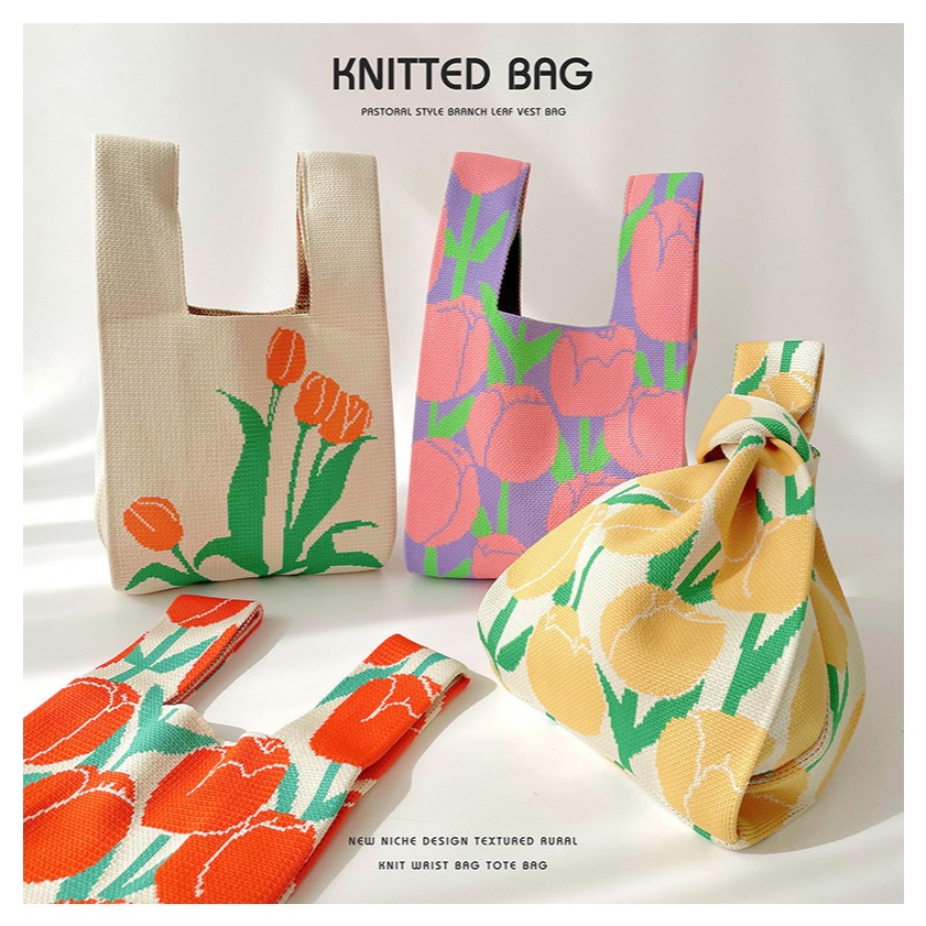 Teachers Day Gift knitted Tote Bag | Office Lunch Shopping Wristlet Bag